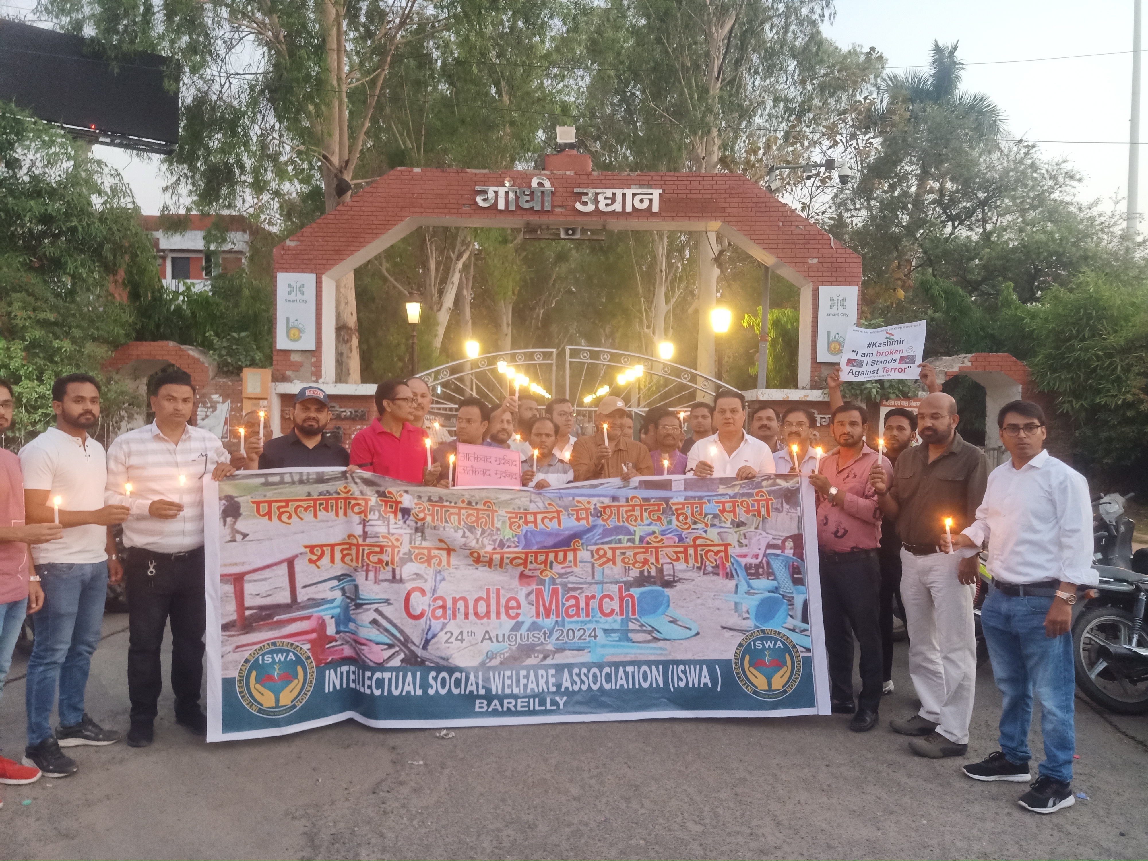 बरेली: कश्मीर के पहलगाम में हाल ही में हुए आतंकी हमले ने पूरे देश को झकझोर कर रख दिया है। हमले में शहीद हुए निर्दोष नागरिकों को श्रद्धांजलि देने और आतंकवाद के खिलाफ एकजुटता प्रदर्शित करने के उद्देश्य से इंटेलेक्चुअल सोशल वेलफेयर एसोसिएशन (इस्वा) द्वारा एक भव्य कैंडल मार्च का आयोजन किया गया। ये कैंडल मार्च गांधी उद्यान पार्क से शुरू होकर चौकी चौराहे तक पहुंचे इस मार्च में सैकड़ों की संख्या में इस्वा के पदाधिकारी, मसीह समाज के सदस्य और विभिन्न धर्मों व समुदायों के नागरिक शामिल हुए।