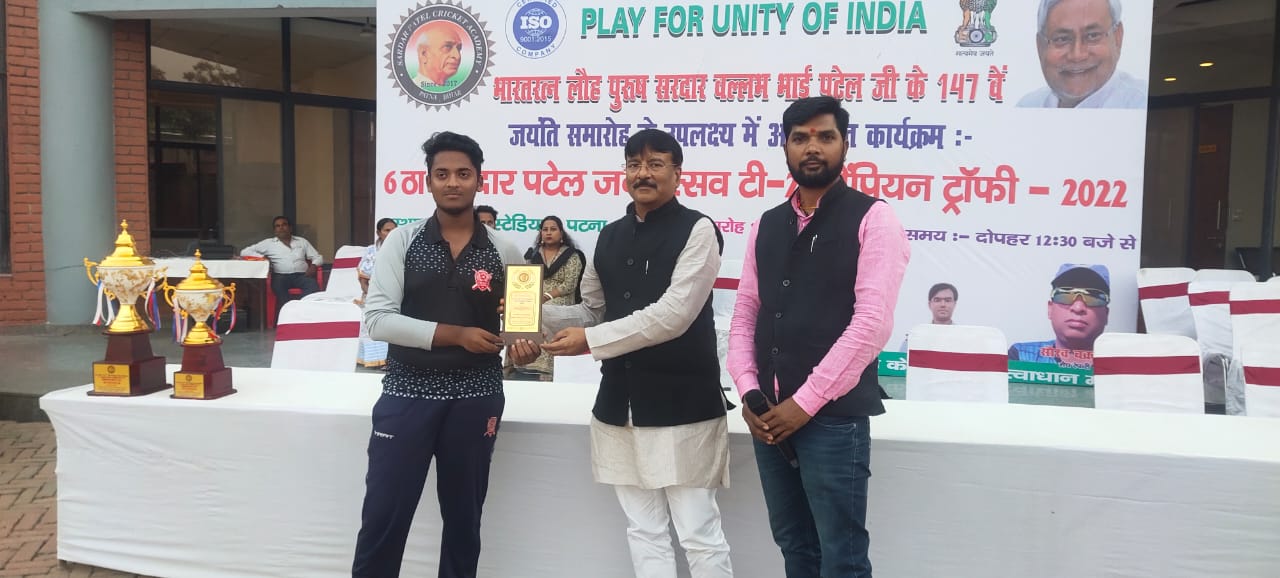 आज राजधानी पटना के ऊर्जा स्टेडियम में भारत रत्न लौह पुरुष सरदार वल्लभभाई पटेल जी के 147वें जयंती समारोह पर “प्ले फॉर यूनिटी ऑफ इंडिया” के तहत आयोजित 6ठा सरदार पटेल जन्मोत्सव टी-20 चैंपियन ट्रॉफी में अंडर-17 और अंडर-25 के अलग -अलग मुकाबले खेले गए। (Cricket Warriors and Arwal XI)
