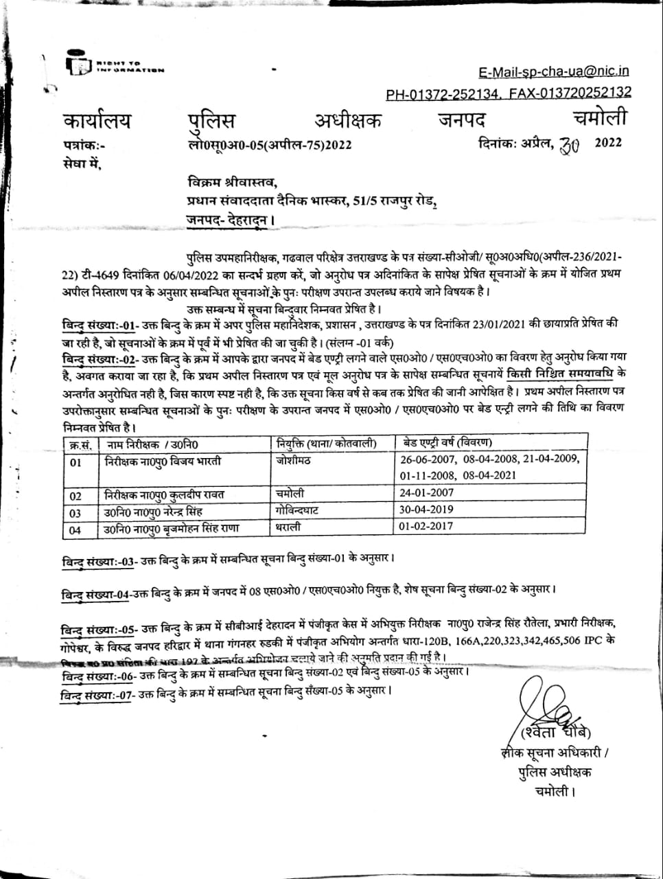 (यह पत्र व्हाट्स ऐप के जरिये प्रभारी पुलिस अधीक्षक, चमोली के आधिकारिक नंबर पर भेजा गया. पत्र का सकारात्मक उत्तर देते हुए उन्होंने मेरे विचारों को जनहित में बताया) (Letter To New Incharge SP)