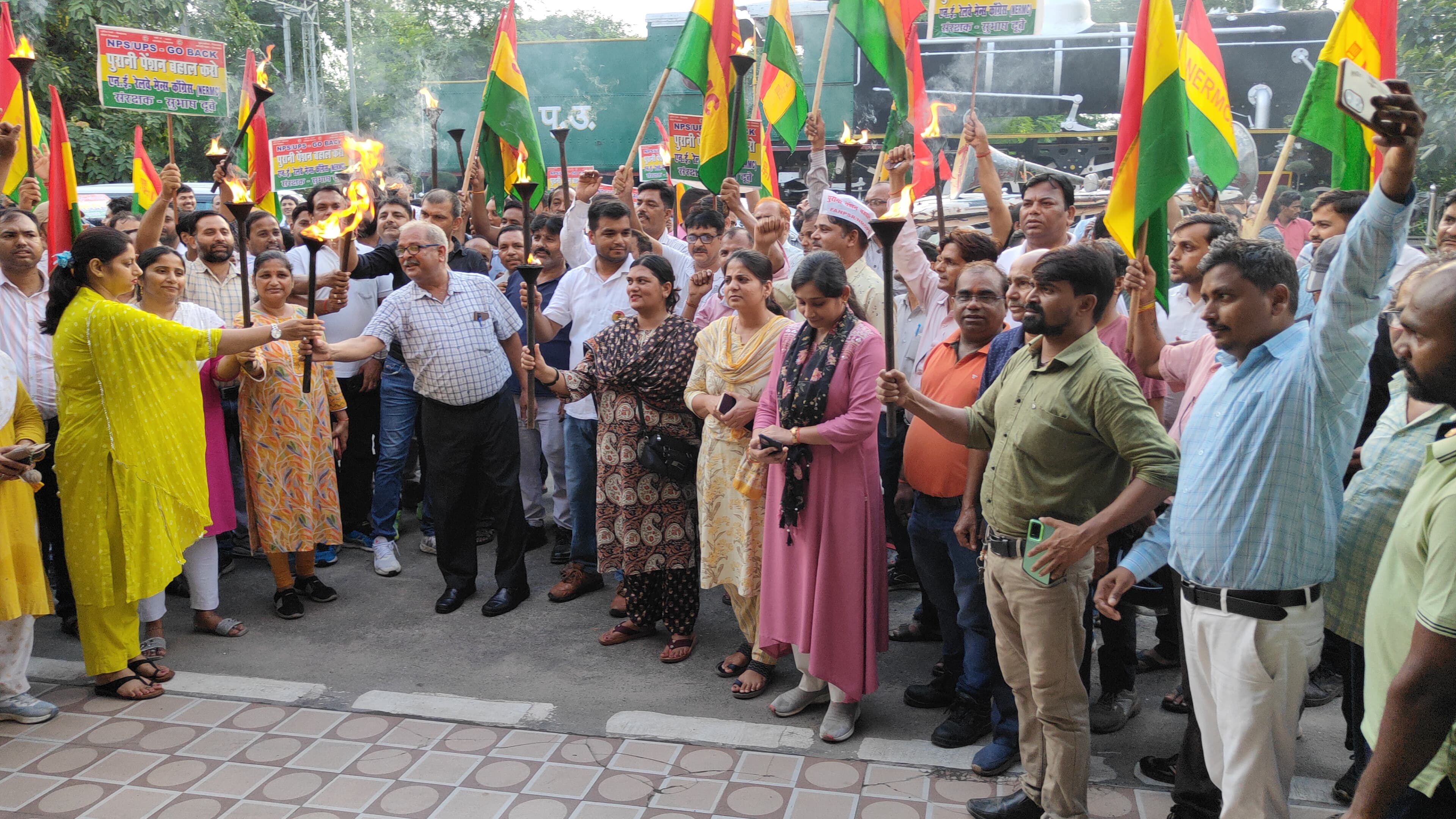 मशाल जुलूस के समापन पूर्व अपने संबोधन में फ्रंट अगेंस्ट एनपीएस इन रेलवे के इज्जतनगर मण्डल संयोजक जयेंद्र शेखर गुप्ता ने कहा कि जो मान्यता प्राप्त फेडरेशनो के नेतागण NPS और UPS की तारीफें करते नहीं थकते उनके दोहरे चरित्र का इससे बड़ा और क्या प्रमाण हो सकता है कि वह स्वयं और उनके शागिर्द UPS का चयन नहीं कर रहे…उनकी और सरकार की तमाम अपीलों, दलीलों और विकल्प के चयन की मियाद बढ़ा देने के बावजूद भी केवल 1.37 प्रतिशत कर्मचारियों ने ही UPS का चयन किया है जो सुबूत है कि यह स्कीम पूरी तरह विफल है। बेहतर है कि सरकार यथाशीघ्र इस बात को स्वीकार कर लें कि जिस प्रकार तीनों कृषि कानून उसकी विफलता थी उसी प्रकार NPS और UPS लाना भी उसकी बड़ी विफलता है और कर्मचारियों के हित और उनकी मांग के अनुसार जल्दी से जल्दी हू ब हू पुरानी पेंशन बहाल कर देनी चाहिए।