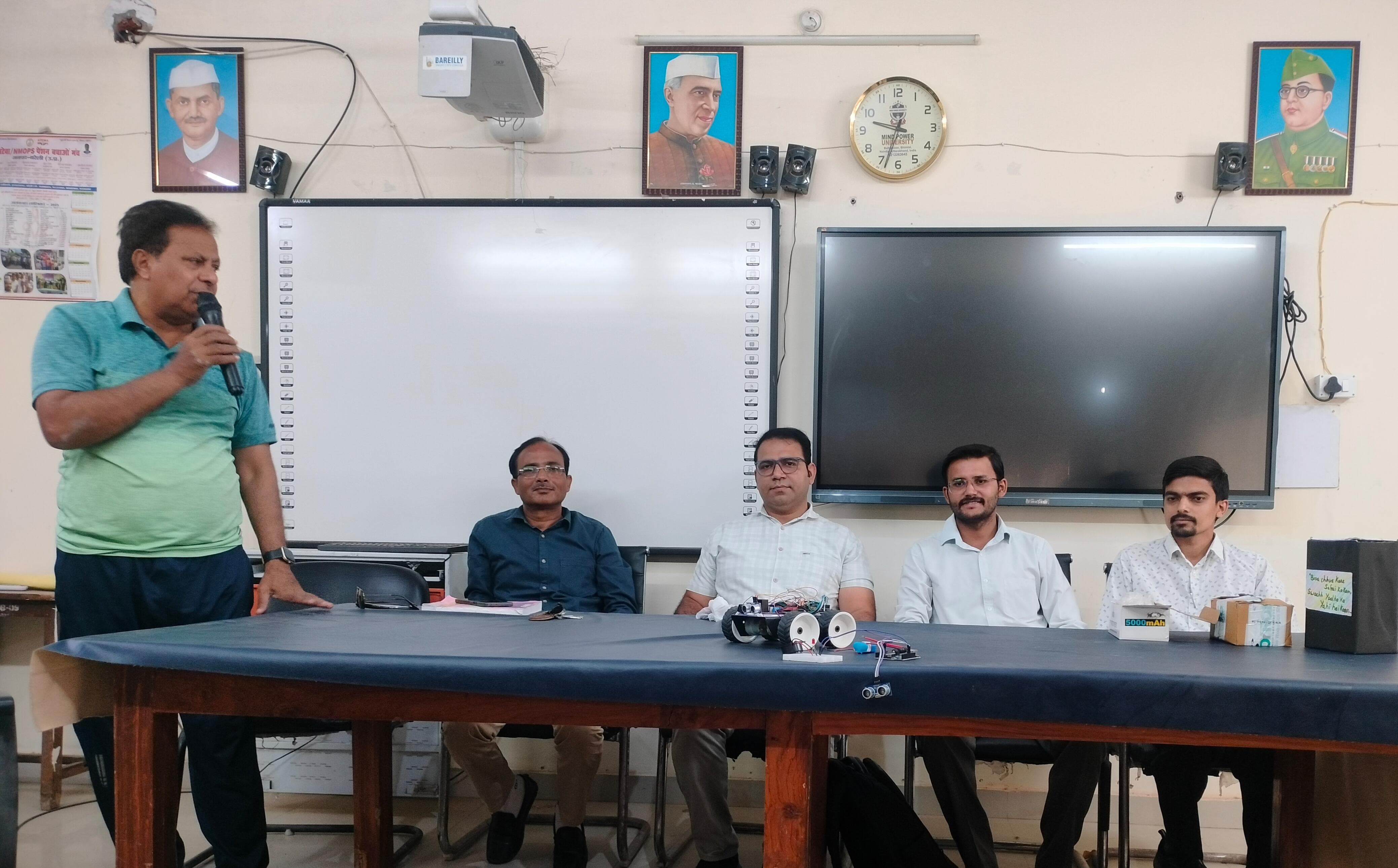 छात्रों को AI के सिद्धांतों, रोबोटिक्स के कंपोनेंट्स (जैसे LED, सेंसर, मोटर, Arduino), तथा प्रैक्टिकल प्रोजेक्ट्स जैसे स्मार्ट डिवाइस और सेंसर आधारित रोबोटों के बारे में लाइव डेमो और हैंड्स-ऑन प्रशिक्षण दिया गया।