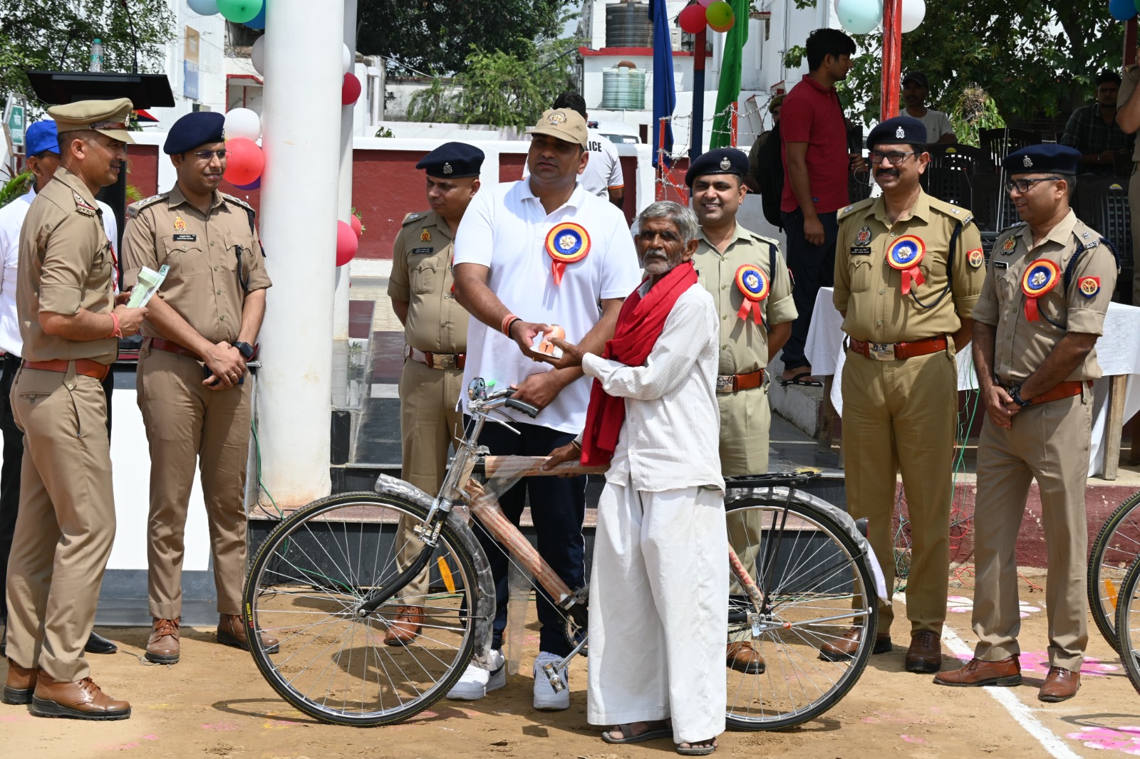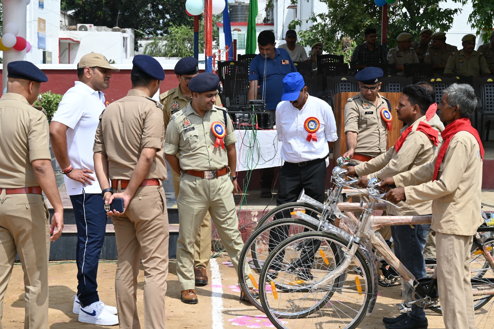 इसके पश्चात वरिष्ठ पुलिस अधीक्षक द्वारा जनपद के 88 चौकीदारों को नई साईकिल व टॉर्च देकर सम्मानित किया गया और बताया कि क्षेत्र में शान्ति एवं कानून-व्यवस्था सुदृढ़ बनाये रखने हेतु ग्राम चौकीदार की अहम भूमिका है जिसे नकारा नहीं जा सकता है।